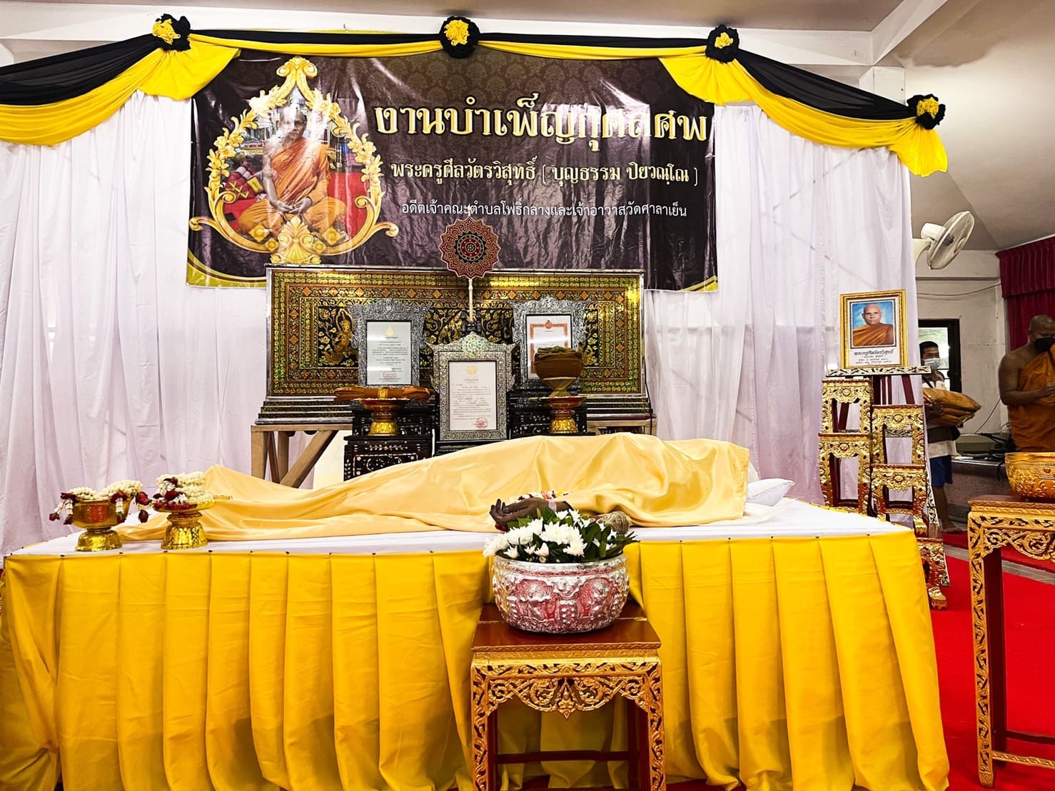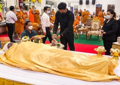 โดย นายอุทัย มิ่งขวัญ ประธานสภาเทศบาล เป็นประธานรดน้ำศพและทอดผ้าบีงสุกุล พร้อมด้วย นายลภัสวัฒน์ แสนสระน้อย และ นายสุรพร หนองหาญพิทักษ์ คณะสมาชิกสภาเทศบาลเขต 2 ร่วมเป็นเกียรติรดน้ำศพ
