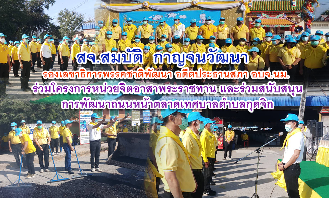 โดยในครั้งนี้ ได้รับการสนับสนุนจาก สจ.สมบัติ กาญจนวัฒนา อดีตประธานสภา อบจ.นม. (รองเลขาธิการพรรคชาติพัฒนา) ได้ไปร่วมโครงการหน่วยจิตอาสาพระราชทาน พัฒนาถนนหน้าตลาดเทศบาลตำบลกุดจิก โดย สจ.สมบัติ ได้สนับสนุนจัดรถบรรทุกหินครุก 1 คันรถ 10 ล้อ + รถพ่วง 3 คันรถบรรทุกแอสฟัลต์ พร้อมรถบด เข้าร่วมโครงการพัฒนาจิตอาสา เพื่อให้ประชาชนขับขี่รถยนต์ รถจักรยานยนต์ อย่างปลอดภัย เป็นของขวัญปีใหม่ มอบให้แก่พี่น้องประชาชนชาวตำบลกุดจิก และประชาชนทั่วไป ได้สัญจรอย่างปลอดภัย