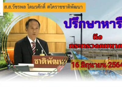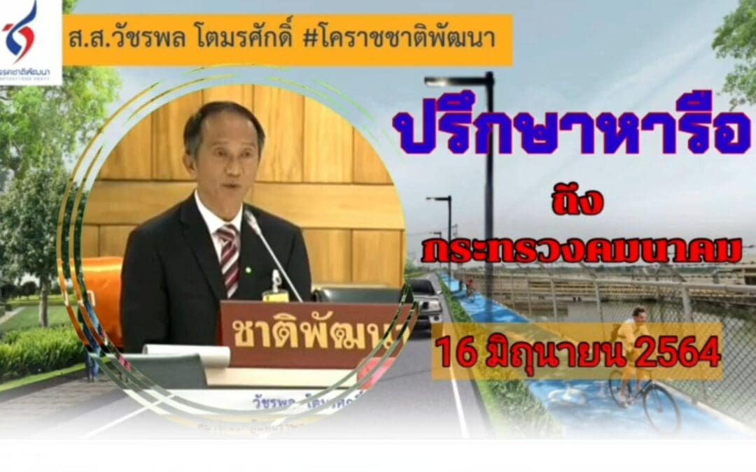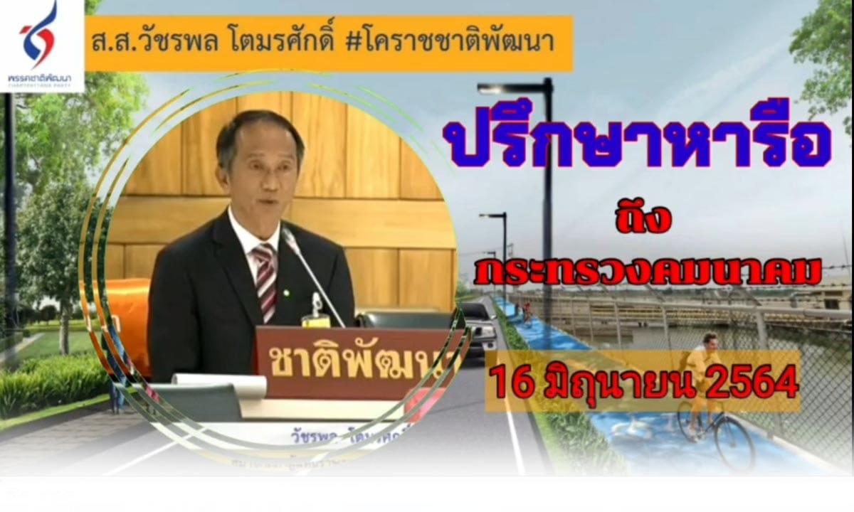 ในการประชุมสภาผู้แทนราษฎร ส.ส.#วัชรพลโตมรศักดิ์ #โคราชชาติพัฒนา ได้หารือต่อที่ประชุมในเรื่องการพัฒนาเส้นทางเลียบทางรถไฟ (Local Road ) ซึ่งทางกรมโยธาฯได้ออกแบบไว้แล้ว และติดขัดเรื่องระเบียบราชการขอให้รัฐสภาได้ประสานไปยังกระทรวงคมนาคม กรมทางหลวง และการถไฟแห่งประเทศไทย เร่งดำเนินการแก้ไข เพื่อประโยชน์ในเรื่องการแก้ปัญหาการจราจร และการปรับภูมิทัศน์เพื่อใช้ประโยชน์ในด้านการท่องเที่ยวพักผ่อนหย่อนใจได้อีกทางหนึ่ง