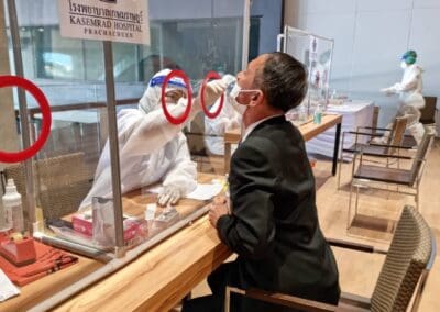 การประชุมสภาผู้แทนราษฎรเพื่อพิจารณาร่างพระราชบัญญัติงบประมาณรายจ่ายประจำปีงบประมาณ พ.ศ. 2565 ในวันแรก มาตรการในการตรวจคัดกรอง โควิด-19 ยังเป็นไปอย่างเคร่งครัด โดยก่อนเริ่มการประชุมสมาชิกสภาผู้แทนราษฎรได้เดินทางมารับการตรวจ Antigen Test Kits (ATK) ซึ่งมีเจ้าหน้าที่จากโรงพยาบาลเกษมราษฎร์มาตั้งจุดตรวจหาเชื้อโควิด-19 ให้แก่สมาชิก เพื่อสร้างความมั่นใจกับผู้เข้าร่วมประชุมงบประมาณทั้ง 3 วันต่อจากนี้ ที่บริเวณโซนกลางหน้าห้องประชุมสภาผู้แทนราษฎร