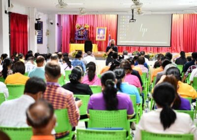 โดยเฉพาะทางเทศบาลมีกลไกสําคัญในการพัฒนาท้องถิ่นในเขตเทศบาลเมืองโคราชของเราสําคัญที่สุดก็คือ ผู้นําชุมชนทุกท่านที่นั่งอยู่ในที่นี้แล้วก็คณะกรรมการชุมชน ได้มีโอกาสมาร่วมกัน การจัดหลักสูตรก็ต้องถือว่ามีความสําคัญ เพราะว่าในการพัฒนา เทศบาลเมือง ทุกอย่างจะต้องอาศัยกลไกหลักก็คือ ทางส่วนของผู้บริหาร ทางส่วนของข้าราชการ และที่สําคัญที่สุดก็คือพวกท่านในที่นี้จะเป็นคนที่จะสะท้อนปัญหา จัดทําแผนที่สําคัญในเขตเทศบาล เพราะว่าในชุมชน ไม่มีใครจะรู้ปัญหาในชุมชนดีเท่ากับพวกท่านจะทราบปัญหาทุกอย่างในชุมชนมีปัญหาอะไร เช่น ฝนตก น้ำท่วมขัง ต้นไม้ ถนนเสียหาย น้ำไม่ไหล ไฟไม่ติด ปัญหายาเสพติด ปัญหาเศรษฐกิจ ปัญหาทุกอย่างพวกท่านจะเป็นผู้ที่สะท้อนปัญหาทั้งหมดให้กับผู้บริหารก็คือเทศบาล อันนี้ถือว่าเป็นกลไกหลักที่จะนําปัญหาต่างๆ มาเพื่อทางเทศบาลจะได้ไปจัดหางบประมาณให้ตรงกับความต้องการของในชุมชน