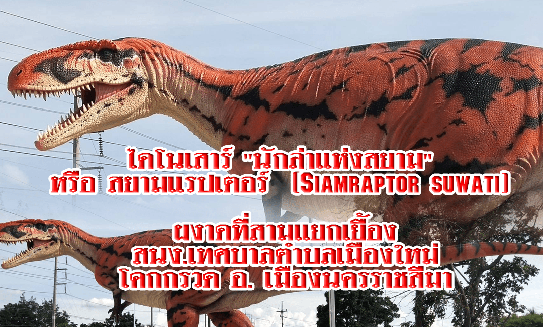 ไดโนเสาร์ “นักล่าแห่งสยาม” หรือ สยามแรปเตอร์ (Siamraptor suwati) ผงาดที่สามแยกเยื้องสนง.เทศบาลตำบลเมืองใหม่โคกกรวด อ. เมืองนครราชสีมา