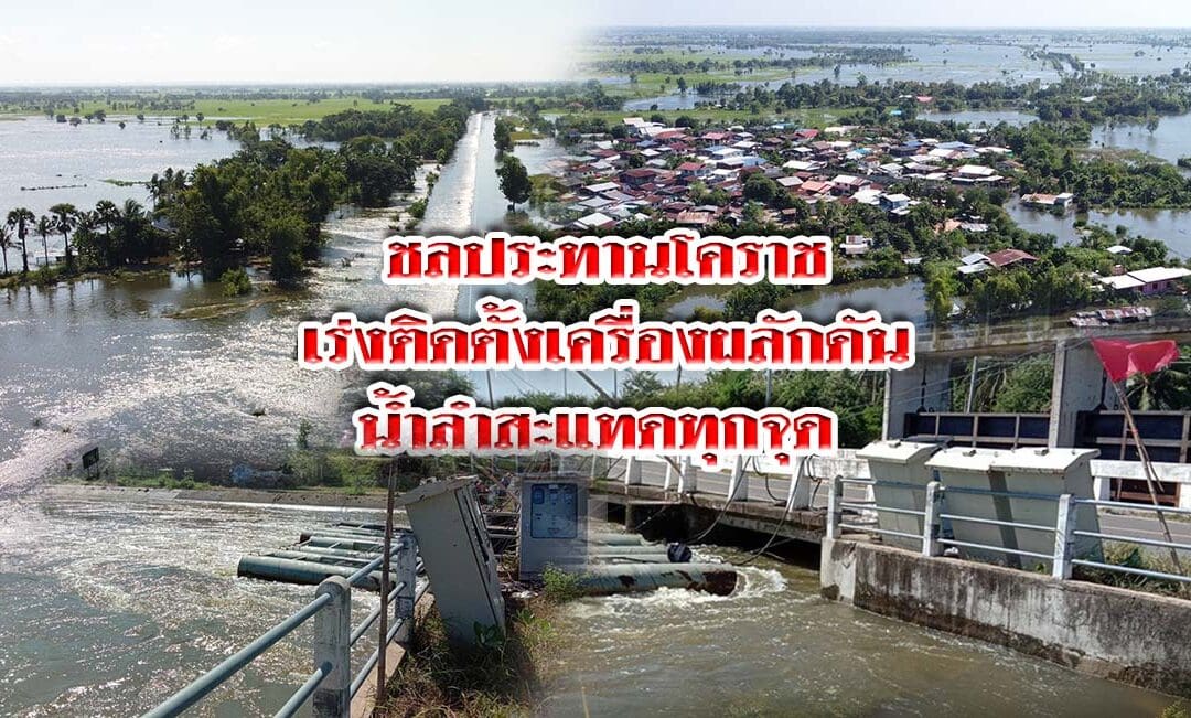ชลประทานโคราชเร่งติดตั้งเครื่องผลักดันน้ำลำสะแทดทุกจุด หลังปริมาณน้ำสูงขึ้นหลากเข้าท่วมถนนสายหลักถูกตัดขาด รถเล็กผ่านไม่ได้ และบ้านเรือนของประชาชนในที่ลุ่มต่ำได้รับผลกระทบเป็นบริเวณกว้าง