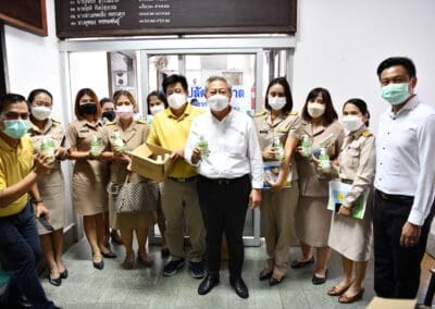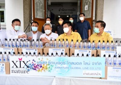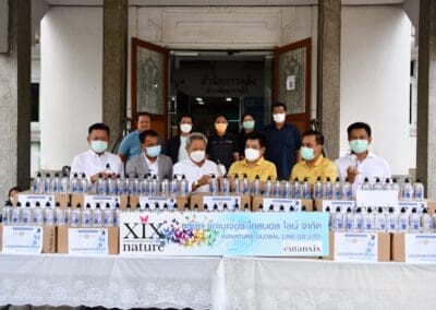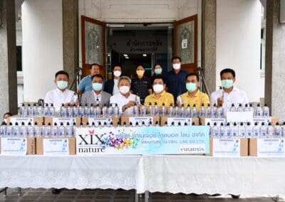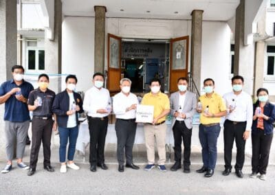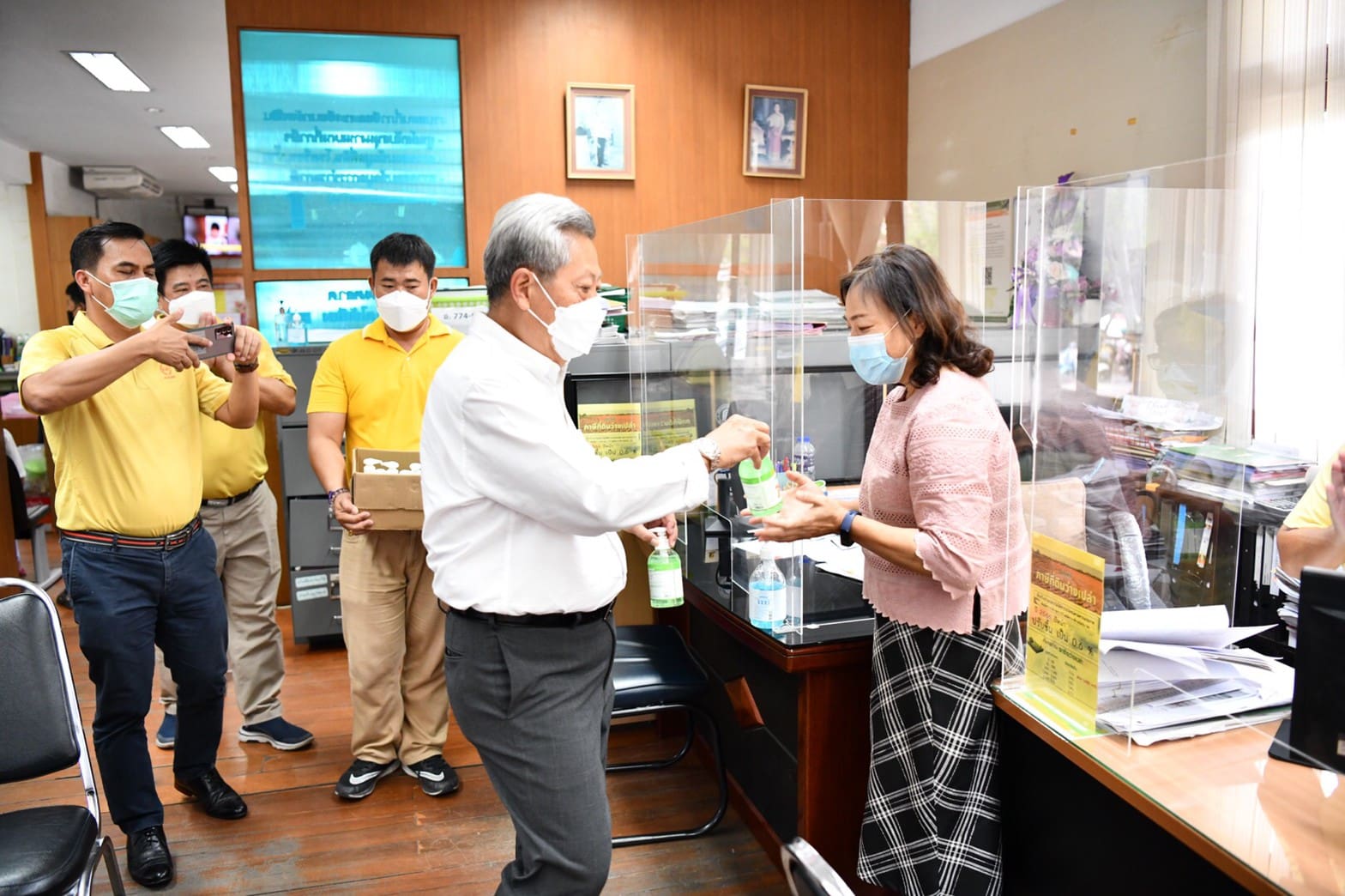 นายประเสริฐ บุญชัยสุข นายกเทศมนตรีนครนครราชสีมา พร้อมด้วยคณะผู้บริหาร สมาชิกสภาเทศบาล ปลัดเทศบาล ร่วมรับมอบแอลกอฮอล์เจลล้างมือ จำนวน 80 ลัง จากบริษัทซิกเนเจอร์ โกลบอล ไลน์ จำกัด ณ หน้าสำนักงานเทศบาลนครนครราขสีมา