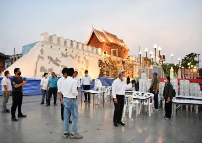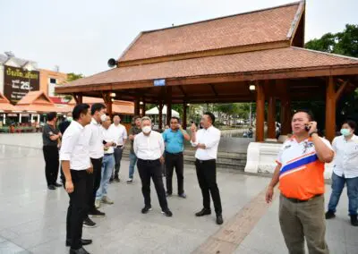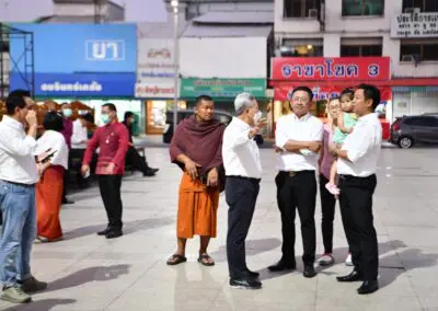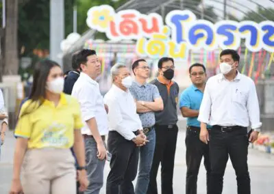 นายประเสริฐ บุญชัยสุข นายกเทศมนตรีนครนครราชสีมา พร้อมด้วยคณะผู้บริหาร สมาชิกสภาเทศบาล รองปลัดเทศบาล ผู้อำนวยการส่วนโยธา ผู้อำนวยการส่วนส่งเสริมการศึกษาและประเพณี และเจ้าหน้าที่สำนักช่าง ลงพื้นที่สำรวจความเรียบร้อยสถานที่จัดงาน สมโภชเมืองนครราชสีมา ครบรอบ 555 ปี “ถนนสายวัฒนธรรม รากราสีมา นำสู่ ทาน ศีล ภาวนา” เพื่อเตรียมจัดสถานที่ ปรับปรุงภูมิทัศน์รอบลานย่าโม ศาลาพิธี ให้มีความพร้อมในการจัดพิธีทำบุญ ตักบาตรพระภิกษุสามเณร 555 รูป “เสริมบุญ ตักบาตร นครราชสีมา 555 ปี วันที่ 18 มี.ค. 66 เวลา 05.55 น. ณ ลานอนุสาวรีย์ท้าวสุรนารี