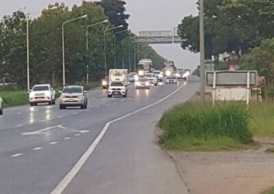 ส่วนถนนบายพาส ช่วงหลักกิโลเมตรที่ 56 ช่วงสะพานต่างระดับเขาใหญ่ ตำบลหนองน้ำแดง อำเภอปากช่อง จังหวัดนครราชสีมา พบว่า สภาพจราจรรถค่อนข้างหนาแน่น แต่ยังคล่องตัว โดยมีรถบางส่วนมาจากอุทยานแห่งชาติเขาใหญ่ สัญจรมาบนถนนธนะรัชต์ แล้ววิ่งมาสมทบกับรถบนถนนมิตรภาพ เพื่อมุ่งหน้าเข้ากรุงเทพฯ ซึ่งรถยังเคลื่อนตัวได้ดี ไม่มีติดสะสม