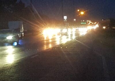 ขณะที่ในช่วงเวลา 20.00 น.สภาพถนนมืด ต้องเปิดไฟหน้ารถส่องทาง แต่ทัศนวิสัยในการมองเห็นยังต่ำ ต้องชะลอความเร็วลง และทิ้งระยะห่างจากรถคันด้านหน้า เพื่อไม่ให้เกิดอุบัติเหตุเฉี่ยวกัน ซึ่งรถที่สัญจรบนทาง ส่วนใหญ่จะเป็นรถยนต์ส่วนบุคคล ทั้งรถเก๋ง รถกระบะ ส่วนรถโดยสารสาธารณะและรถบรรทุก มีสัญจรอยู่บ้างแต่ไม่มากนัก ซึ่งหลังจากผ่าน ต.หนองสาหร่าย เข้าสู่ ต.กลางดง อ.ปากช่อง สภาพถนนบางช่วงจะมีลาดชันสูง มีฝนตกบางช่วง ต้องเพิ่มความระมัดระวังในการสัญจร