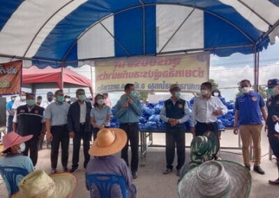 นครราชสีมา-วันนี้ (5 ตุลาคม 2564) ที่บริเวณปากทางเข้า บ้านลำเชิงไกร หมู่ 9 ต.โคกสูง อ.เมืองนครราชสีมา นายวิเชียร จันทรโณทัย ผู้ว่าราชการจังหวัดนครราชสีมา พร้อมด้วยนายวิทยา ผลานุสนธิ์ ผู้จัดการส่วนปฏิบัติการระบบท่อเขต 12 บริษัท ปตท.จำกัด (มหาชน) และนายกฤษฎิ์ พูนเกษม หัวหน้า ปภ.นครราชสีมา และนายณรงชนนฐ์ ดีปู่ รักษาการนายอำเภอเมืองนครราชสีมา ปลัดอาวุโส อ.เมืองนครราชสีมา เจ้าหน้าที่หน่วยทหาร ออกเยี่ยมเยียนและช่วยเหลือพี่น้องชาวบ้านในพื้นที่บ้านลำเชิงไกร และมอบถุงยังชีพ 263 ถุง โดยมีผู้นำชุมชน กำนัน ผู้ใหญ่บ้าน เทศบาลตำบลโคกสูง