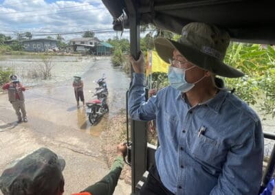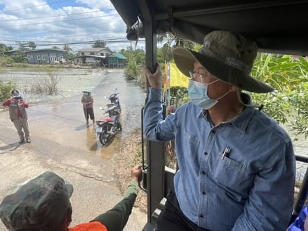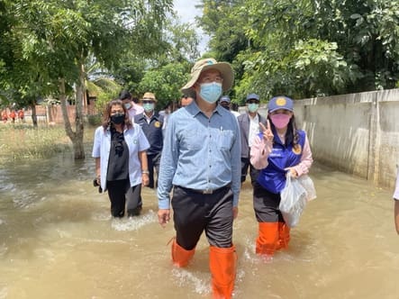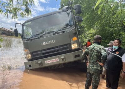 พ่อเมืองโคราช นำคณะลุยฝ่าน้ำท่วมสูง 50-60 ซม. ช่วยชาวบ้านลำเชิงไกร จนรถ GMC ตะแคงตกถนน ทหารได้รับบาดเจ็บ 1 นาย