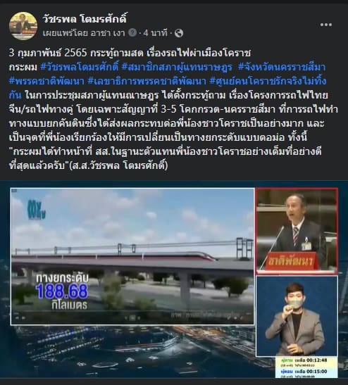 กระทู้ถามสด เรื่องรถไฟผ่าเมืองโคราช