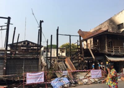 จากกณีเกิดเหตุไฟไหม้อาคารในตลาดชุมชนปักธงชัย หน้าวัดกลาง ตำบลเมืองปัก อำเภอปักธงชัย จังหวัดนครราชสีมา เมื่อครึ่งช่วงเกือบ 16.00 น.ที่ผ่านมา(10 เมษายน 2565) ซึ่งจุดที่เกิดเพลิงไหม้ เป็นบ้านไม้สองชั้นเหมือนห้องแถวปลูกติดกัน ตรวจสอบเบื้องต้นพบว่า บ้านต้นเพลิงเป็นบ้านของนางศรีวรรณ เกยุรพันธุ์ อายุ 80 ปี เจ้าของบ้าน ประกอบอาชีพขายล็อตเตอรี่ ซึ่งทีมผจญเพลิงของกู้ภัยฮุก 31 โคราช ได้พบว่าเสียชีวิตในที่เกิดเหตุ อยู่ใต้ซากเศษไหม้ที่ถูกเพลิงไหม้หล่นมาทับ และมีร่องรอยถูกไฟไหม้เกินกว่า 90 % อาการสาหัสจึงทำให้เสียชีวิตในที่เกิดเหตุนั้น