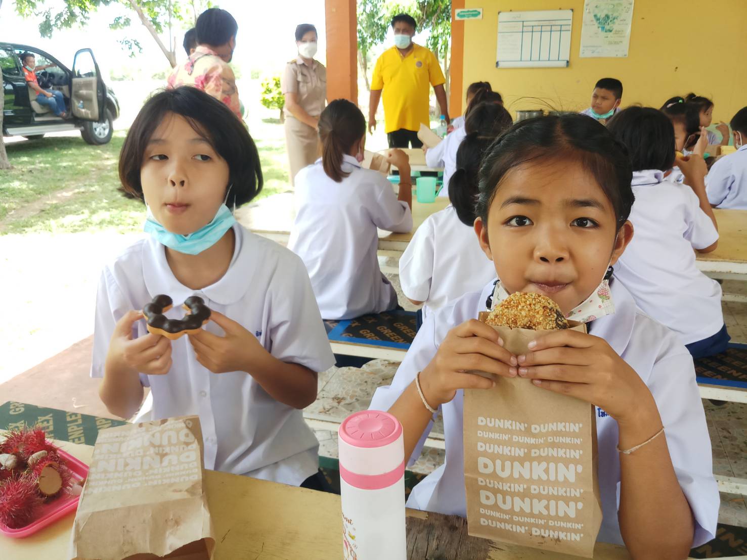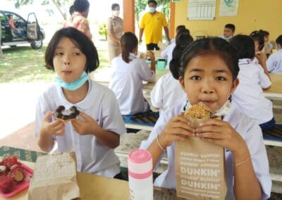 และแจกขนม ‘Dunkin’ Donut’ แก่นักเรียนทุกคน