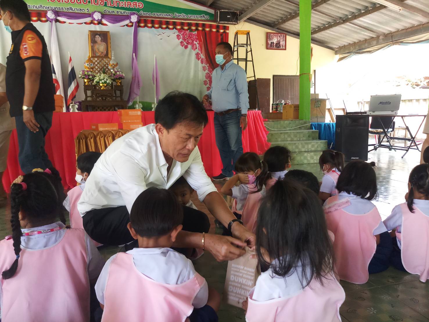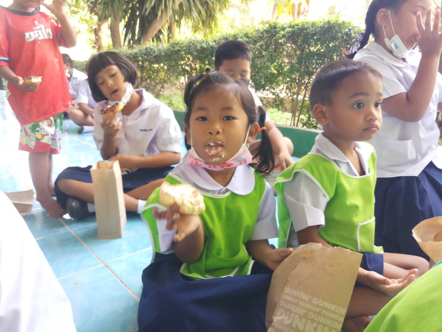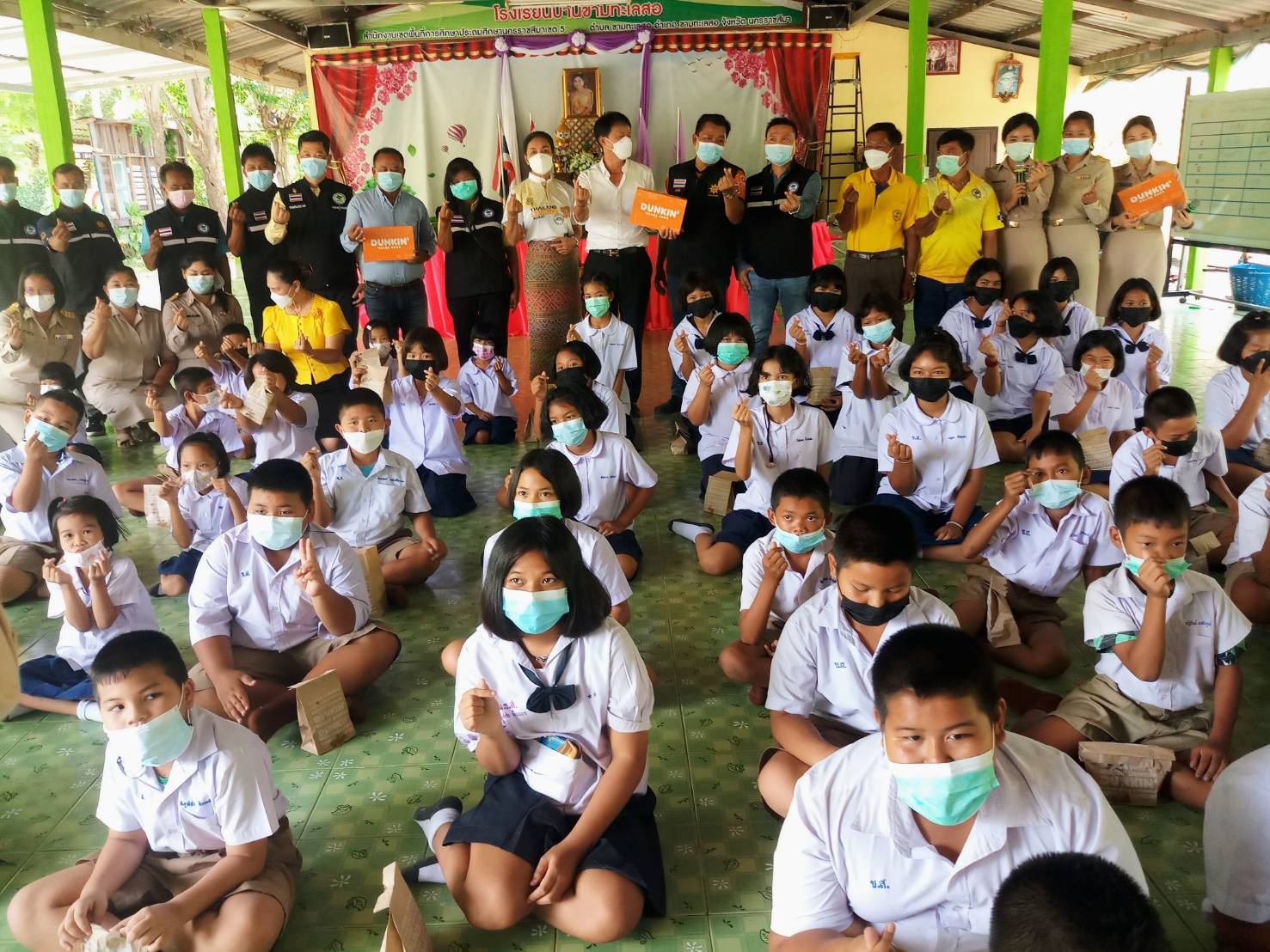 พร้อมกับแจกขนม DUNKIN’DONUT’ แก่เด็กนักเรียนทุกคน