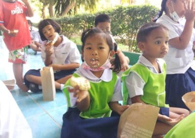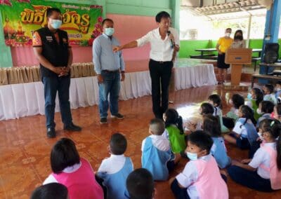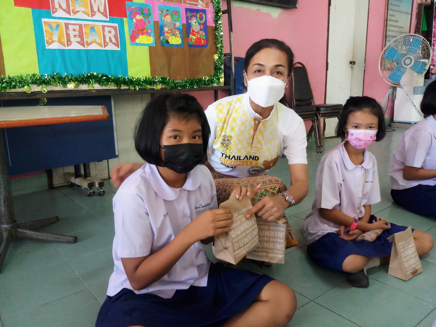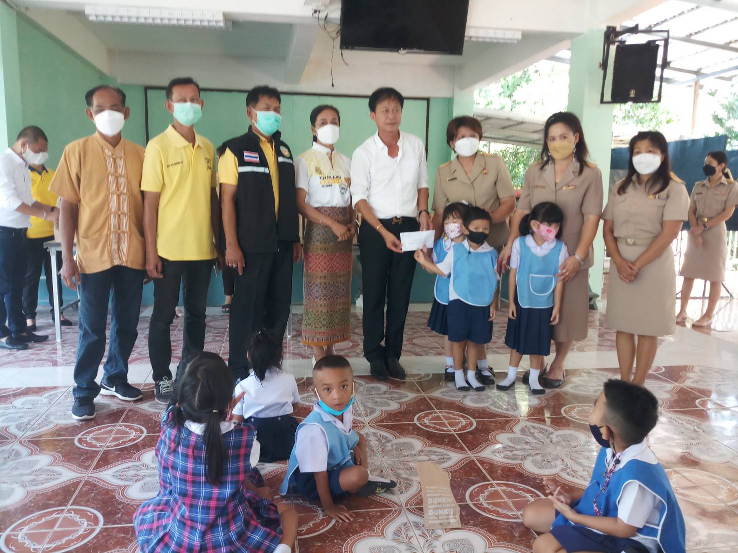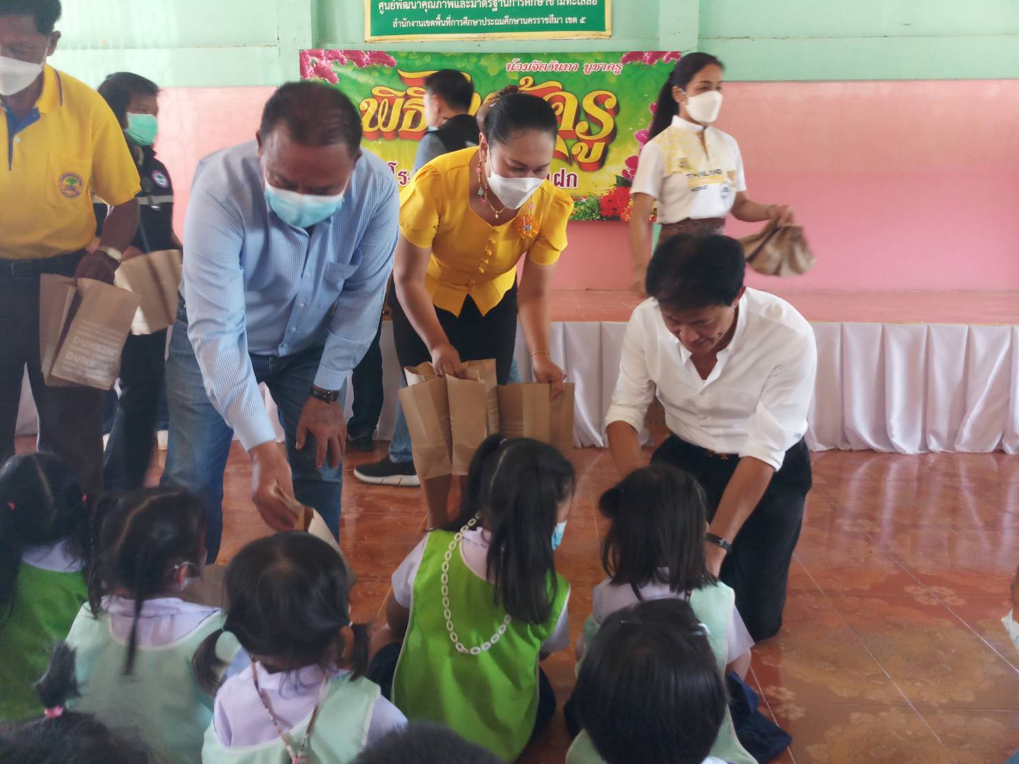 พร้อมกับแจกขนม DUNKIN’DONUT’ แก่เด็กนักเรียนทุกคน