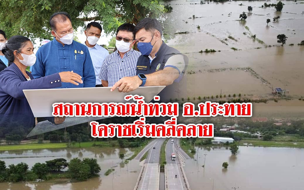 สถานการณ์น้ำท่วม อ.ประทาย โคราชเริ่มคลี่คลาย หลังฝนหยุดตกในพื้นที่ และชลประทานเร่งผันน้ำเข้าลำสะแทด คาด 1 สัปดาห์สถานการณ์กลับคืนสู่สภาวะปกติ