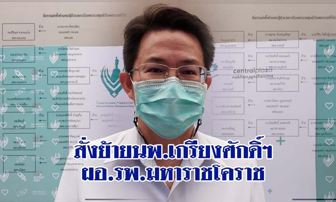 ปลัดกระทรวงสาธารณสุข สั่งเด้งฟ้าผ่า นพ.เกรียงศักดิ์ฯ ผอ.รพ.มหาราชนครราชสีมา ไปเป็น ผอ.รพ.ขอนแก่น คาดปมล็อกสเป็ค ATK