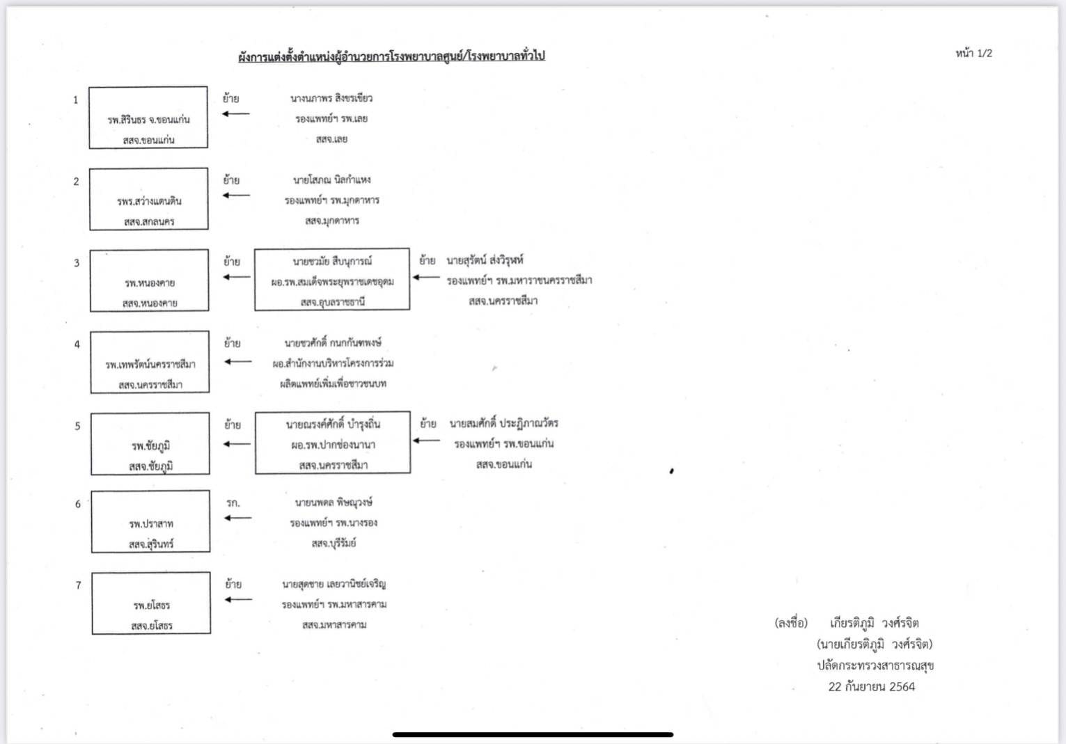 1.พญ.นภาพร สิงขรเขียว รองแพทย์ฯ รพ.เลย จ.เลย ย้ายเป็น ผอ.รพ.สิรินทร จ.ขอนแก่น