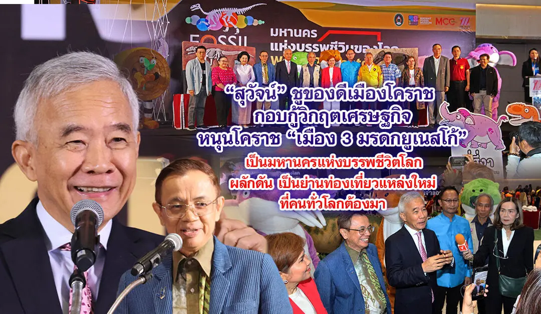 “สุวัจน์” ชูของดีเมืองโคราช กอบกู้วิกฤตเศรษฐกิจ หนุน โคราช “เมือง 3 มรดกยูเนสโก้” เป็นมหานครแห่งบรรพชีวิตโลก ผลักดัน เป็นย่านท่องเที่ยวแหล่งใหม่ที่คนทั่วโลกต้องมา