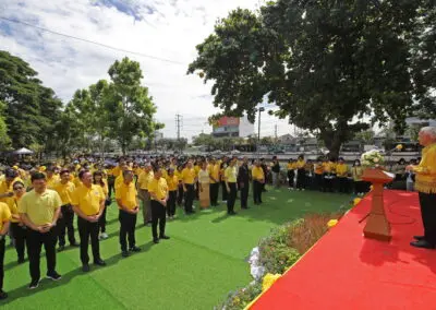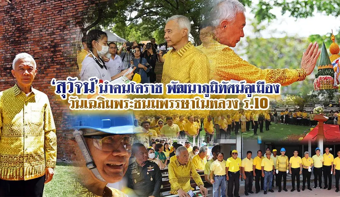 นายสุวัจน์ กล่าวว่า เนื่องในโอกาสวันเฉลิมพระชนมพรรษา พระบาทสมเด็จพระวชิรเกล้าเจ้าอยู่หัว ถือว่าเป็นวันมหามงคล อยากให้พสกนิกรชาวไทยทุกท่านได้ร่วมกันทำความดี ถวายความจงรักภักดี อย่างเช่นที่ เทศบาลนครนครราชสีมา ร่วมกับหน่วยงานราชการ ภาคเอกชน พี่น้องประชาชนในเขตนครเมืองนครราชสีมา ได้ร่วมแรงร่วมใจกันในการอนุรักษ์พื้นที่เมืองเก่าและคูเมืองนครราชสีมา ซึ่งสร้างมาตั้งแต่พระบรมไตรโลกนาถ เมื่อ 555 ปีที่สร้างเมืองโคราช ต่อมาในรัชสมัยสมเด็จพระนารายณ์มหาราช ประมาณ 360 ปี ได้ให้วิศวะกรชาวฝรั่งเศส เดอ ลามาร์ เป็นผู้ออกแบบวางผังเมือง มีลักษณะเป็นสี่เหลี่ยม ตัดถนน สร้างกำแพงเมือง มีสระน้ำ เป็นโครงสร้างเมืองตั้งแต่สมัยที่ความมั่นคงทางด้านการป้องกันประเทศยังอยู่ เมืองโคราชเป็นเมืองที่พี่น้องประชาชนต้องภาคภูมิใจว่าทันสมัยมาแล้วตั้ง 350 กว่าปี และเก่าแก่มาแล้ว 555 ปี