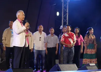 ผู้สื่อข่าวรายงานว่า นายสุวัจน์ และคณะครูได้ร่วมกันร้องเพลง “บ้านเรา” บรรยากาศเป็นไปอย่างอบอุ่น