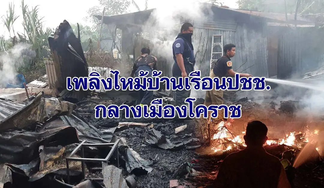 เกิดเหตุเพลิงไหม้บ้านเรือนประชาชนใจกลางเมืองโคราช โชคดีไม่มีผู้บาดเจ็บและเสียชีวิต