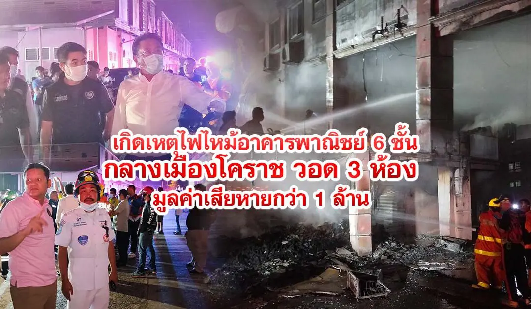 เกิดเหตุไฟไหม้อาคารพาณิชย์ 6 ชั้นกลางเมืองโคราช วอด 3 ห้อง มูลค่าความเสียหายกว่า 1 ล้าน คาดไฟฟ้าลัดวงจร