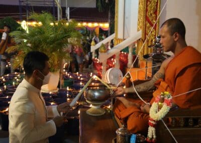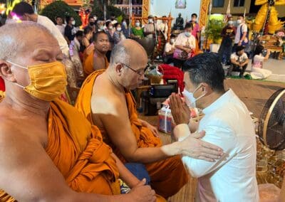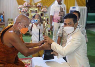 โดยพระเถรเมตตาอธิฐานจิตวัตถุมงคล ประกอบด้วย พระอาจารย์ป๋อง วัดสมานมิตร พระอาจารย์แจ้ วัดน้อมประชาสรรค์ อ.วังน้อย จ.พระนครศรีอยุธยา พระอาจารย์วา วัดสนวน ต.หนองไข่น้ำ พระอาจารย์เมธี วัดสะแก (พระอารามหลวง) และเจ้าพิธีบวงสรวงชื่อดังแห่งเมืองโคราช พระอาจารย์มหาต่อ ธัมมรังสี วัดพระนารายณ์มหาราชวรวิหาร