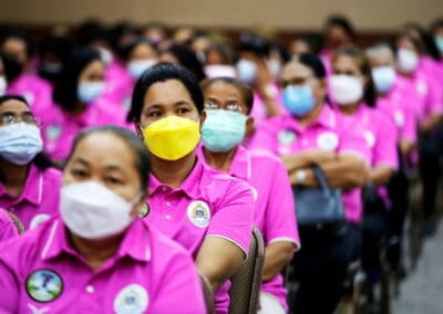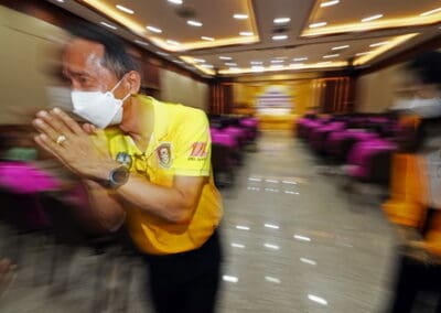 ฉะนั้น พอเกิดความเปลี่ยนแปลง วันนี้ หัวข้อกีฬา ซึ่งเดิมจะจำกัดคนไปดูกีฬา ซึ่งช่วงแรกๆ จะไม่มีคนเข้าไปดูจากเมื่อก่อนการแข่งฟุตบอลสวาทแคท ทีมโคราช เคยมีคนดูเต็มสนามกีฬา 80 พรรษา 27,000 คน ตอนหลังโควิด 8,000- 10,000 ลดลงจนปัจจุบัน เหลือ 0 เพราะสมาคมกีฬาไม่ให้ เข้าไปดู หรือต่างประเทศฟุตบอลพรีเมียร์ แข่งครั้งเดียว คนดูประมาณ 70,000 คน ค่าดูจะเก็บได้ประมาณ 600 ล้านบาท แต่วันนี้ 0 ประเทศอังกฤษ ไม่ให้แฟนบอลเข้าสนามเหมือนกัน แต่ใช้วิธีเอารูปคนเชียร์ฟุตบอลไปติดตรงที่นั่งเวลาเชียร์จะมีเสียงแอฟแฟก เป็นเสียงคนเชียร์แทน