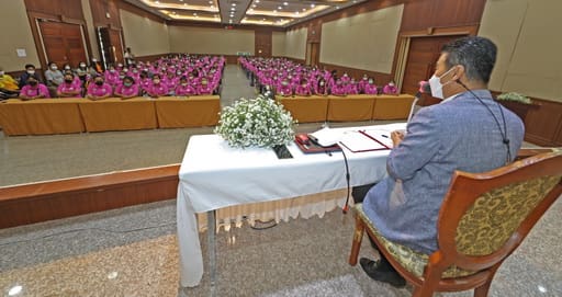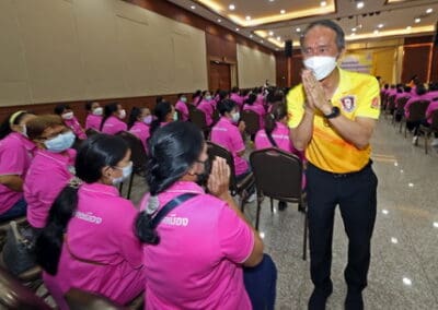 โดยมี นายวัชรพล โตมรศักดิ์ สส.นครราชสีมา เขต 2 พรรคชาติพัฒนา กล่าวรายงานร่วมกับวิทยากร และผู้เข้าอบรมซึ่งเป็นคณะกรรมการพัฒนาสตรีอำเภอเมือง จังหวัดนครราชสีมา ทั้ง 25 ตำบล จำนวน 500 คน แบ่งเป็น 2 ภาคๆ ละ 250 คน นำทีมโดย นางสุทิน ชาติพุดซา ประธานคณะกรรมการพัฒนาสตรีอำเภอเมืองนครราชสีมา ภายใต้มาตราการของศูนย์บริหารสถานการณ์การแพร่ระบาดของโรคติดเชื้อไวรัสโคโรนา 2019 (โควิด-19) หรือ ศบค.