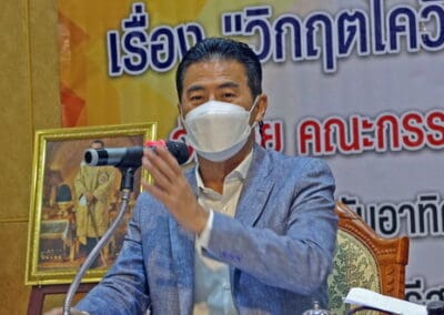 นายเทวัญ กล่าวว่าสถานการณ์โควิด ทำให้วิถีชีวิตของทุกคนเปลี่ยนไปทั้งการทำงาน การค้า การลงทุนต่างๆ ยกตัวอย่าง เราไม่เคยคิดเลยว่าเราจะขายของที่ตลาดไม่ได้ ไปซื้อของที่ตลาดไม่ได้ หรือลูกหลานเราจากที่ตื่นเช้า 7-8 โมงไปโรงเรียน แต่ตอนนี้ไม่ได้ไปโรงเรียนเพราะโรงเรียนปิด ทุกอย่างปิดหมด ถึงแม้วันนี้ เราคิดว่าโควิดดีขึ้นแต่จริงๆ ไม่ดีขึ้น เพราะวันนี้ตัวเลขปัจจุบันมีผู้ติดเชื้อ 50,000 คน และคนเสียชีวิตประมาณ 60 คน โคราชเรา ผมย้ำเดิมที่ประมาณ 500-600 คน แต่ว่าวันนี้ติดกว่า 1300-1400 คน แต่เนื่องจากว่าคนตายน้อย เพราะเรามีภูมิคุ้มกันหมู่จากการได้ฉีดวัคซีน
