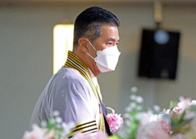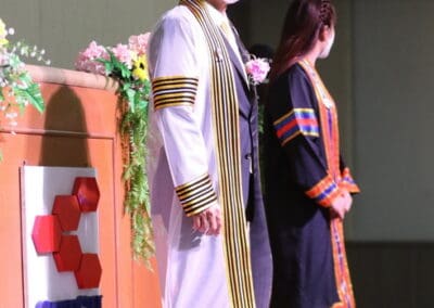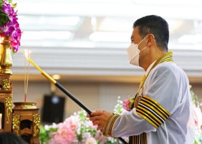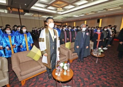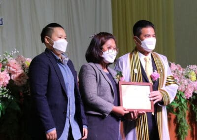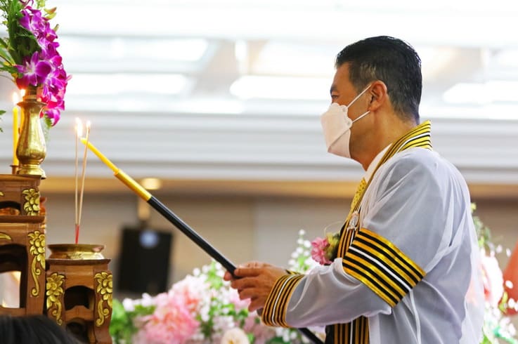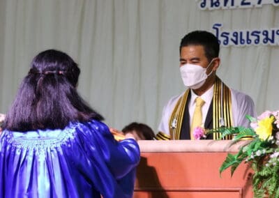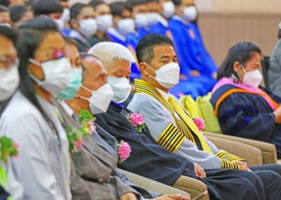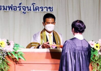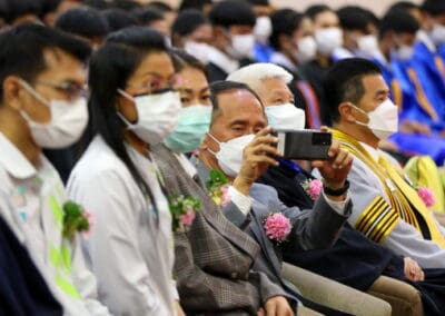 นายเทวัญ กล่าวแสดงความยินดีกับความสำเร็จของบัณฑิตใหม่ ขอให้ตั้งใจทำงานช่วยเหลือครอบครัว ช่วยเหลือประเทศชาติ เป็นกำลังสำคัญ เป็นอนาคตของประเทศชาติ และในโอกาสนี้ ผมขออำนาจคุณพระศรีรัตนตรัย สิ่งศักดิ์สิทธิ์ทั้งหลายในสากลในโลกนี้ ขอพรคุณย่าโมปกป้องคุ้มครองทุกคน ขอให้มีแต่ความสุข ความเจริญ