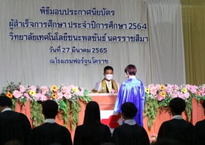วันที่ 27 มีนาคม 2565 เวลา 10.30 น.ณ โรงแรมฟอร์จูน โคราช นายเทวัญ ลิปตพัลลภ อดีตรัฐมนตรีประจำสำนักนายกรัฐมนตรีและหัวหน้าพรรคชาติพัฒนา (ชพน.)เป็นประธานในพิธีมอบประกาศนียบัตร ผู้สำเร็จการศึกษา ประจำปีการศึกษา 2564 วิทยาลัยเทคโนโลยีชนะพลขันธ์ นครราชสีมา จำนวน 700 คน