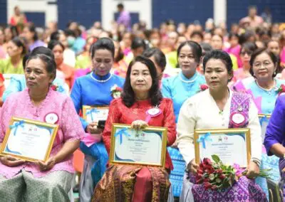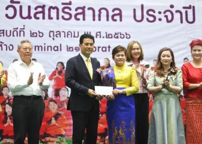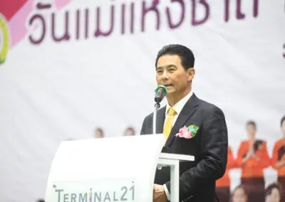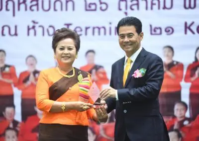 เทวัญ ประธานพิธีอัญเชิญและแลกเงินขวัญถุงพระราชทาน กองทุนแม่ของแผ่นดิน ชุมชนเบญจรงค์สามัคคี