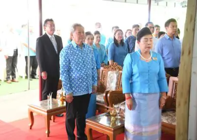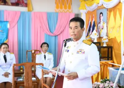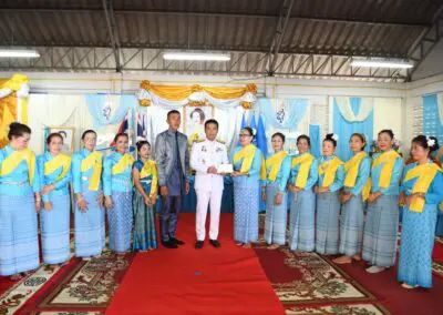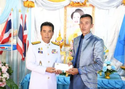 เทวัญ ประธานพิธีอัญเชิญและแลกเงินขวัญถุงพระราชทาน กองทุนแม่ของแผ่นดิน ชุมชนเบญจรงค์สามัคคี