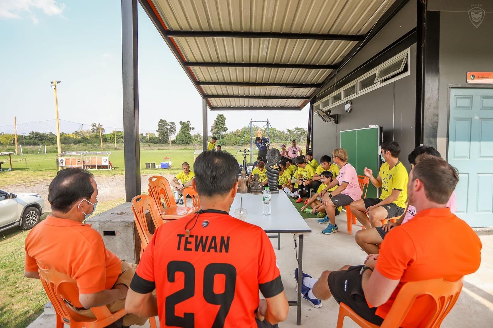 ผู้สื่อข่าวรายงานว่า เมื่อวันที่ 14 เมษายน 2565 ก่อนการแข่งขันสองวัน นายเทวัญ ลิปตพัลลภ อดีตรัฐมนตรีประจำสำนักนายกรัฐมนตรี หัวหน้าพรรคชาติพัฒนา และนายวรวีร์ มะกูดี ประธานบริหารของสโมสรนครราชสีมา มาสด้า เอฟซี เดินทางมาให้กำลังใจนักเตะในการสู้ศึกไทยลีกช่วงโค้งสุดท้าย และถือโอกาสให้โอวาทแก่นักเตะในวันสงกรานต์ ณ สนามฝึกซ้อมสโมสร นครราชสีมา มาสด้า เอฟซี ถือเป็นการเรียกขวัญกำลังใจ ก่อนเปิดบ้านรับ “ราชันมังกร” ราชบุรี มิตรผล เอฟซี (วันที่ 16 เมษายน 2565)