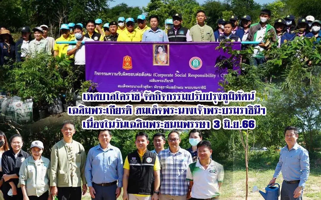 วันที่ 1 มิ.ย. 66 เวลา 09.00 น.นายชาตรี วงษ์วิบูลย์สิน รองนายกเทศมนตรีนครนครราชสีมา ร่วมกับกองทัพภาคที่ 2 จัดกิจกรรมการมีส่วนร่วมกับชุมชน (CRS) พื้นที่โดยรอบศูนย์กำจัดขยะเทศบาลนครนครราชสีมากิจกรรมปลูกต้นไม้ (วันสิ่งแวดล้อมโลก) และกิจกรรมปรับปรุงภูมิทัศน์โดยรอบพื้นที่ส่วนกำจัดขยะเทศบาลฯ ภายใต้โครงการบริหารจัดการด้วยระบบและดูแลระบบผลิตปุ๋ยอินทรีย์และกระแสไฟฟ้าจากขยะมูลฝอยเทศบาลนครนครราชสีมา ปีงบประมาณ 2566 เพื่อเฉลิมพระเกียรติ สมเด็จพระนางเจ้าพระบรมราชินีฯ เนื่องในวันเฉลิมพระชนมพรรษา 3 มิ.ย.66 ณ ชุมชนบ้านหนองปลิงใหม่ หมู่ที่ 9 ต.หนองบัวศาลา อ.เมือง จ.นครราชสีมา