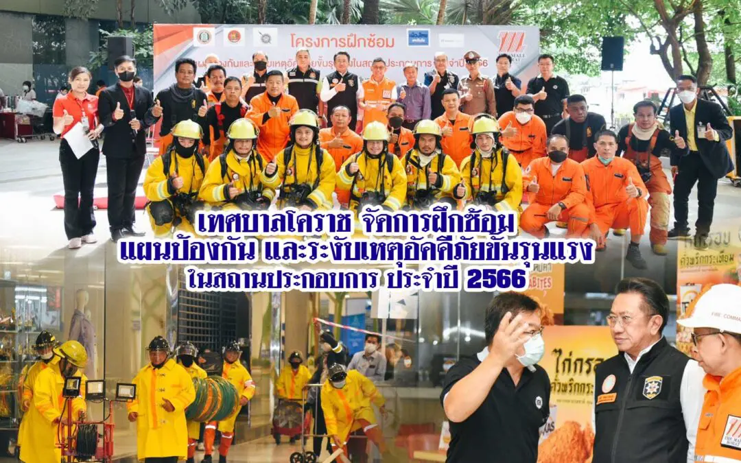 เทศบาลโคราช : โครงการฝึกซ้อมแผนป้องกันและระงับเหตุอัคคีภัยขั้นรุนแรงในสถานประกอบการ ประจำปี 2566