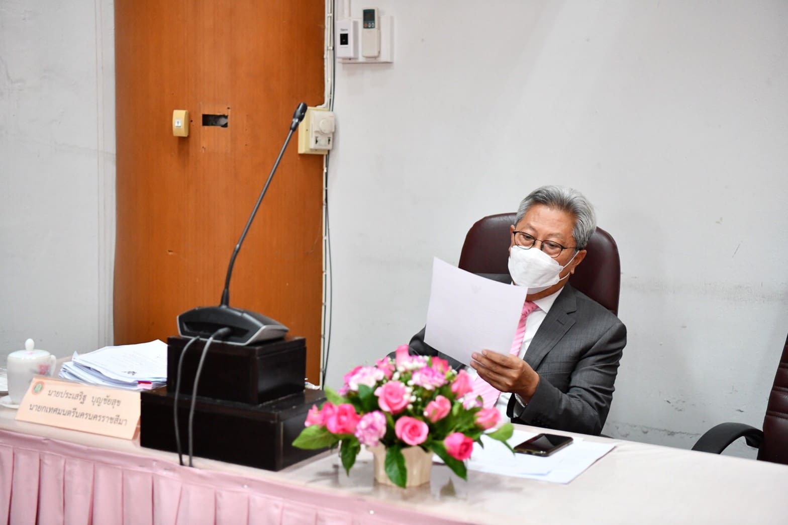 นายอุทัย มิ่งขวัญ ประธานสภาเทศบาลนครนครราชสีมา เปิดประชุมสภา สมัยสามัญ สมัยที่ 1 ประจำปี 2565 ครั้งที่ 1 ณ ห้องประชุมกาญจนาภิเษก ชั้น 5 เทศบาลนครนครราชสีมา