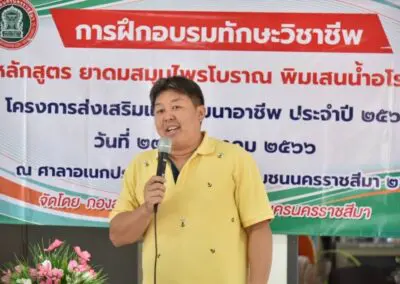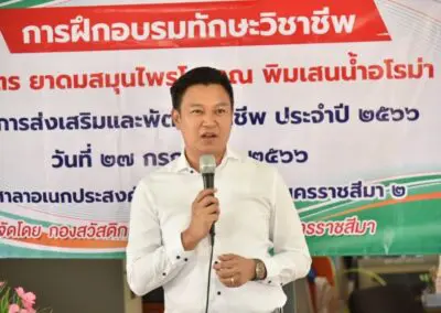 นายวุฒิศักดิ์ ภาวะศิลป์ รองนายกเทศมนตรีนครนครราชสีมา พร้อมด้วยสมาชิกสภาเทศบาล เจ้าหน้าที่กองสวัสดิการสังคม และประชาชน ร่วมการฝึกอบรมทักษะวิชาชีพ หลักสูตร ยาดมสมุนไพรโบราณ พิมเสนน้ำอโรม่า โครงการส่งเสริมและพัฒนาอาชีพ ประจำปี 2566 ณ ศาลาอเนกประสงค์ชุมชนเคหะชุมชนนครราชสีมา 2