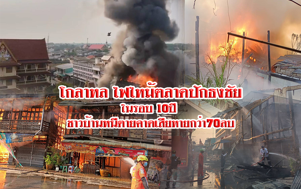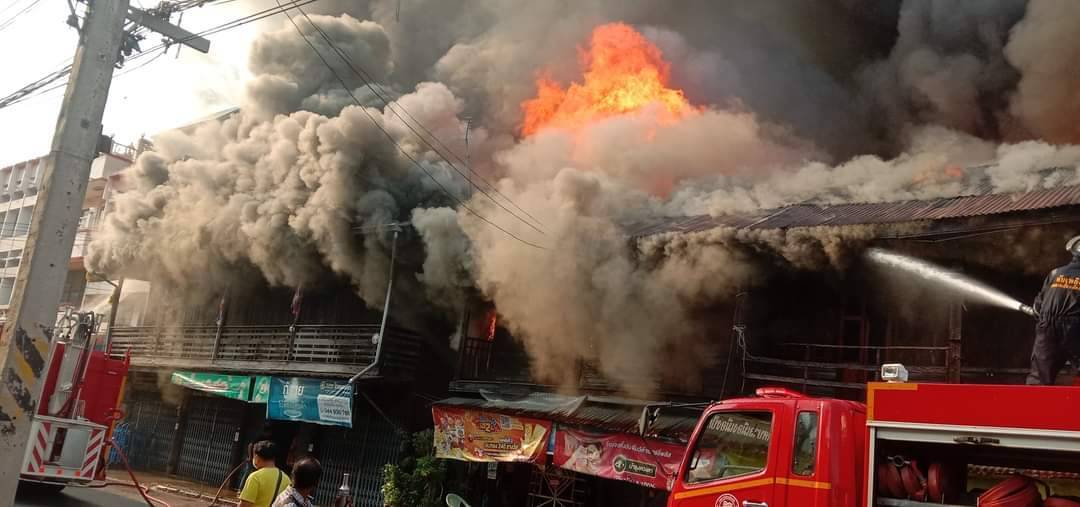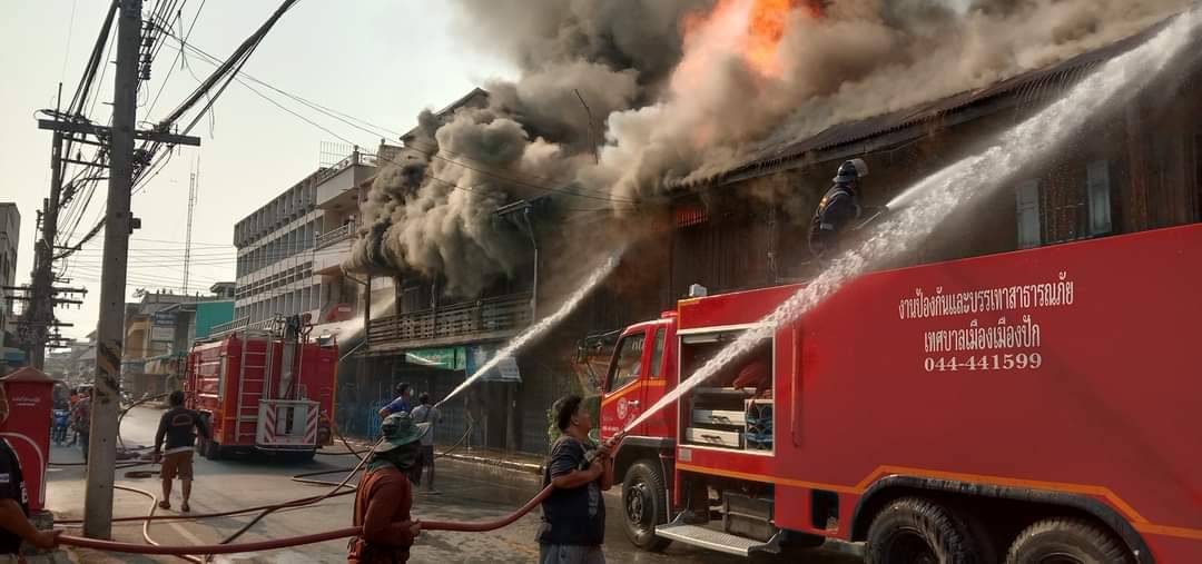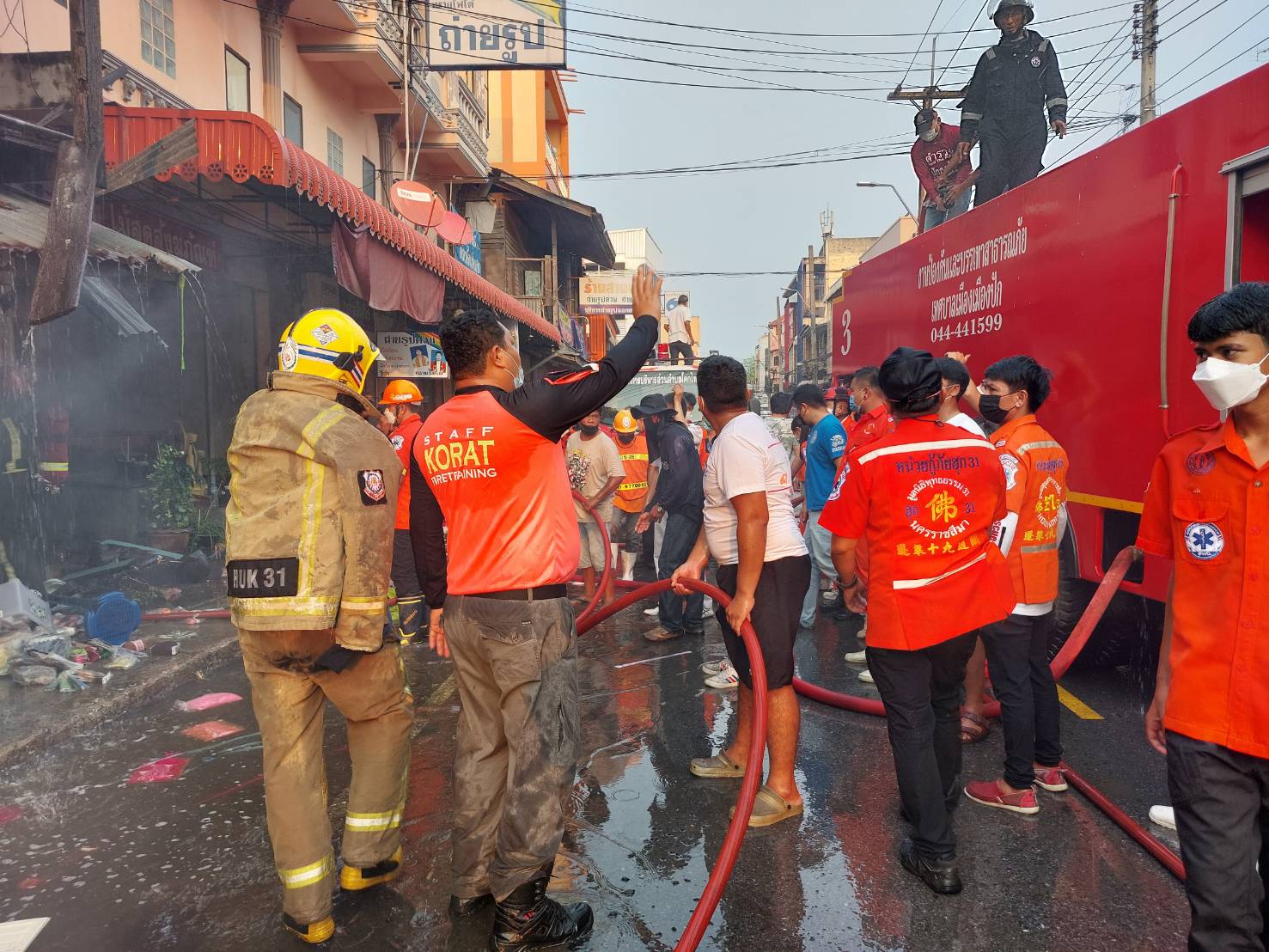 โกลาหล .. ไฟไหม้ตลาดปักธงชัยอีกครั้งในรอบ 10 ปี ชาวบ้านพากันหนีตาย จนท.ระดมฉีดน้ำกว่า 45 นาทีจึงสกัดเพลิงไว้ได้ คาดเสียหายไม่ต่ำกว่า 70 ล้านบาท
