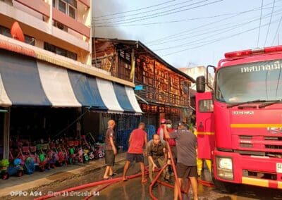 ซึ่งครั้งนี้ครบ 10 ปีแล้วที่มาเกิดเหตุอีกครั้ง โดยบริเวณเกิดเหตุ เป็นร้านตัดผม จำหน่ายวัสดุก่อสร้าง และร้านขายผ้า ส่วนต้นเพลิงคาดว่าน่าจะมาจากบ้านหลังติดกันที่ไม่ได้ขายสินค้าอะไร ด้านนางสาวอโนชา เลาเจริญทรัพย์ เจ้าของบ้านที่ถูกเพลิงไหม้ เล่าว่า เห็นบ้านต้นเพลิงเป็นห้องแถว 2 ชั้นปลุกติดกัน ซึ่งเจ้าของห้องได้อุ่นอาหารทิ้งไว้แล้วก็หลับไป จนมาเกิดเพลิงไหม้ขึ้นดังกล่าว ซึ่งบ้านของตนเป็นบ้านปูน แต่ด้านหลังบ้านเป็นไม้ จึงถูกเพลิงไหม้ไปด้วย ตนและเพื่อนจึงช่วยกันดันไม้ที่ติดไฟให้ออกไปห่างจากตัวบ้านได้ก่อน ไฟจึงไม่ลามมาถึงตัวบ้านที่เป็นตึก โชคดีที่เหตุการณ์ในครั้งนี้ไม่มีใครได้รับบาดเจ็บ แต่เจ้าหน้าที่ฯ ต้องระดมฉีดน้ำสกัดเพลิง นานกว่า 45 นาที จึงสามารถควบคุมเพลิงไว้ได้ คาดว่าเสียหายไม่ต่ำกว่า 70 ล้านบาท .
