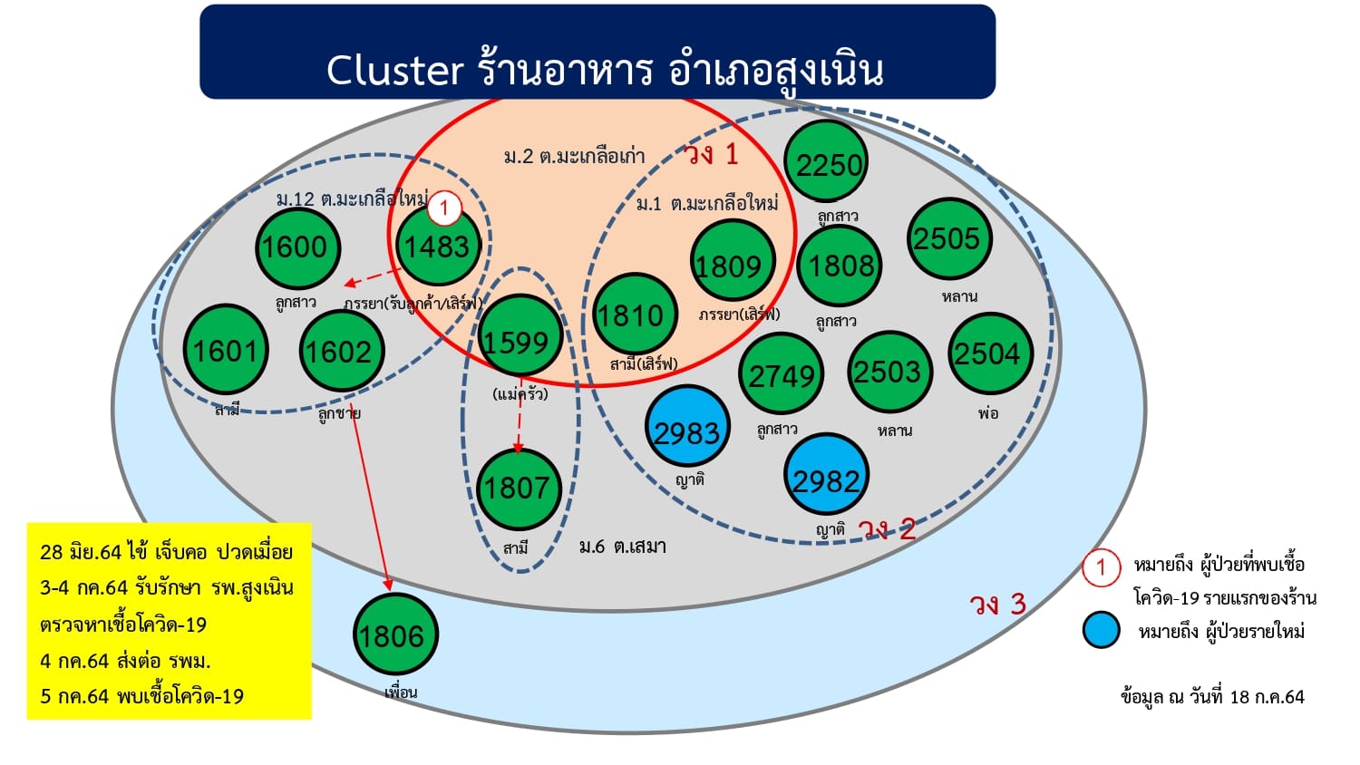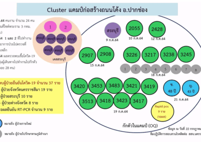 10.คลัสเตอร์ร้านอาหารขวัญข้าว ต.ในเมือง อ.เมืองนครราชสีมา ตรวจพบกุ๊กและพนักงานในร้านติดเชื้อ 6 ราย เมื่อวันที่ 4 ก.ค.64 มีกลุ่มเสี่ยงเป็นลูกค้าที่ไปนั่งรับประทานอาหารระหว่างวันที่ 4-17 ก.ค.64 นับพันราย.