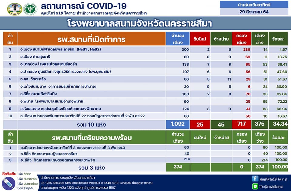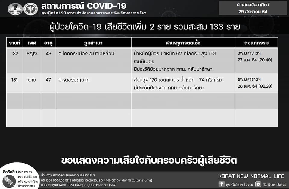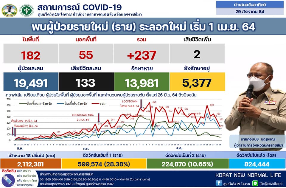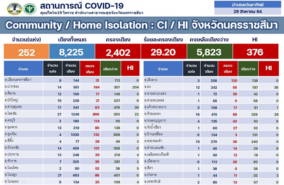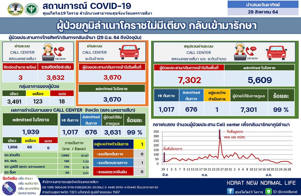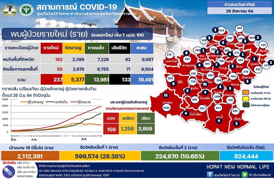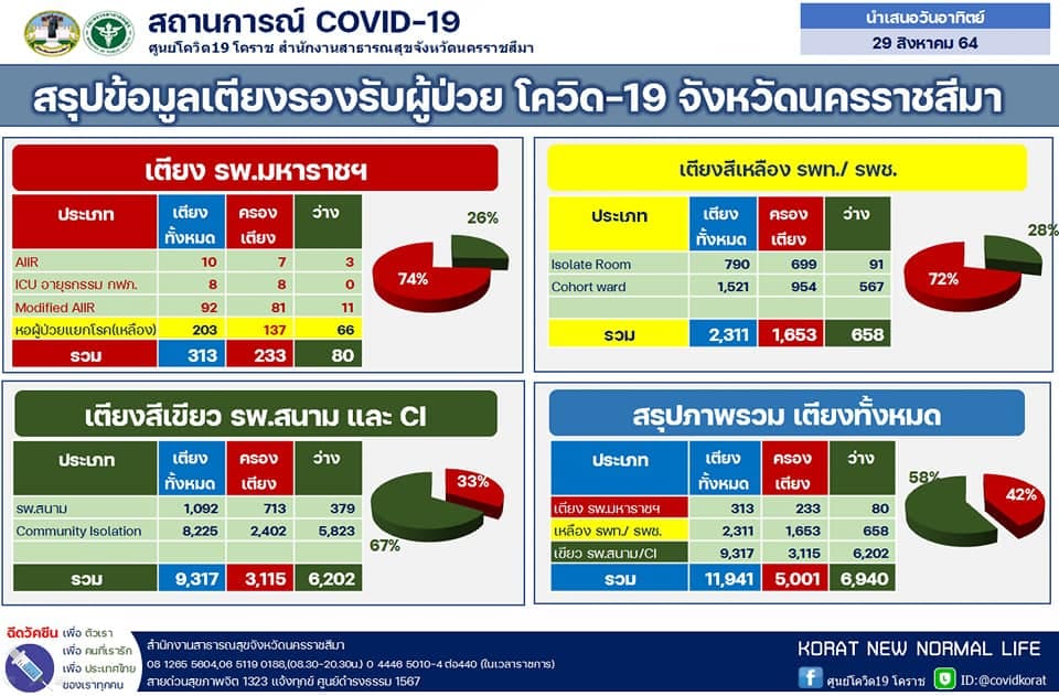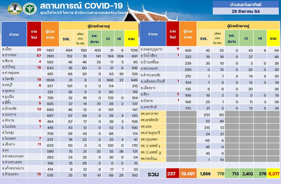 รายสถานการณ์ผู้ป่วยโควิด19 จังหวัดนครราชสีมา ประจำวันที่ 29 ส.ค. 64