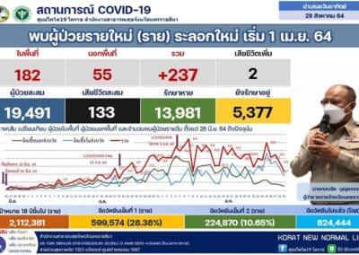 โคราช วันนี้ป่วยเพิ่ม 237 ราย เสียชีวิต 2 ราย