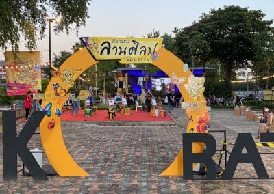 นครราชสีมา – วันนี้ (27 ธ.ค.64) ที่ บริเวณ TK Park (ข้างวัดพายัพ) ต.ในเมือง อ.เมือง จ.นครราชสีมา เทศบาลนครนครราชสีมา ร่วมกับสำนักงานวัฒนธรรมจังหวัดนครราชสีมา จัดกิจกรรมลานศิลปวัฒนธรรม ในงานมหกรรมศิลปะนานาชาติ เพื่อส่งเสริมให้เกิดพื้นที่ศิลปวัฒนธรรมเพื่อการเรียนรู้ สำหรับเด็ก เยาวชน และประชาชนทั่วไป ให้มีความรู้ความเข้าใจในศิลปวัฒนธรรมท้องถิ่น ศิลปวัฒนธรรมร่วมสมัย สร้างจิตสำนึกรักและภาคภูมิใจ ในวัฒนธรรมของตนเอง มีส่วนร่วมพัฒนางานด้านศิลปะอย่างยั่งยืน นอกจากนี้การจัดกิจกรรมในครั้งนี้ยังถือว่าเป็นกิจกรรมที่ต้อนรับเทศกาลปีใหม่ที่จัดขึ้นในจังหวัดนครราชสีมาอีกด้วย