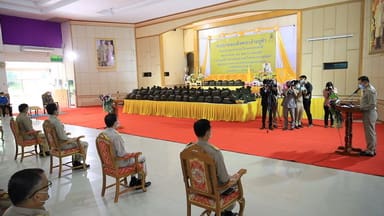 นครราชสีมา-วันนี้ (4 ตุลาคม 2564) ที่หอประชุมโรงเรียนโนนไทยคุรุอุปถัมภ์ อ.โนนไทย จ.นครราชสีมา พลอากาศเอกจอม รุ่งสว่าง องคมนตรี ประชุมและติดตามสถานการณ์การแก้ไขปัญหาอุทกภัยในพื้นที่จังหวัดนครราชสีมา โดยมีนายวิเชียร จันทรโณทัย ผู้ว่าราชการจังหวัดฯ และหัวหน้าส่วนราชการที่เกี่ยวข้อง เข้าร่วมประชุมและรายงานสถานการณ์ ทั้งนี้ องคมนตรี เชิญพระบรมราโชบายในการป้องกันและแก้ไขการเกิดภัยธรรมชาติของพระบาทสมเด็จพระเจ้าอยู่หัวฯ ไปกล่าวในที่ประชุม เพื่อให้หน่วยงานที่เกี่ยวข้อง น้อมนำไปเป็นแนวทางในการแก้ไขสถานการณ์