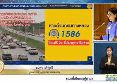 ดังกล่าว กระทรวงคมนาคม กรมทางหลวงได้มีความใส่ใจในเรื่องของความปลอดภัยเรื่องของผิวจราจร เรื่องของรอยต่อของสะพานคอนกรีต หากเกิดมีอุบัติเหตุทางใดขอให้โทรติดต่อเครือข่ายของกระทรวงคมนาคมได้ที่หมายเลข 1586