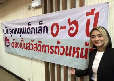 3.พัฒนาศูนย์เด็กเล็กโดยการเพิ่มงบประมาณเงินอุดหนุนศูนย์เด็กเล็ก (6 เดือน – 4 ขวบ) หัวละ 500 บาทต่อเดือน ซึ่งจะจ่ายงบประมาณผ่านท้องถิ่นแบ่งเป็น Phase รวมถึงกำหนดให้โรงเรียนต้องปรับหลักสูตร และพัฒนาทักษะครูพี่เลี้ยงให้มีความรู้เหมาะสมกับการดูแลเด็ก​