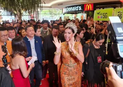 นครราชสีมา – วันนี้ (11 ธันวาคม 2566) เวลา 14.00 น. ที่บริเวณแกรนด์ฮอลล์ ชั้น 1 ห้างสรรพสินค้าเดอะมอลล์โคราช จังหวัดนครราชสีมา ร่วมกับเดอะมอลล์โคราช และหลายภาคส่วนในจังหวัดนครราชสีมา ได้จัดกิจกรรมต้อนรับ นางสาวแอนโทเนีย โพซิ้ว รองชะเลิศอันดับ 1 มิสยูนิเวิร์ส 2023 ซึ่งเป็นตำแหน่งสูงที่สุดของไทยในรอบ 35 ปี โดยมีนายสมเกียรติ วิริยะกุลนันท์ รองผู้ว่าราชการจังหวัดนครราชสีมา ขึ้นกล่าวต้อนรับ “แอนโทเนีย” กลับบ้านเกิดที่โคราช และมีนายกิตติ เชาวน์ดี ผู้แทน รมว.ท่องเที่ยวและกีฬา กล่าวแสดงความยินดี พร้อมกันนี้ยังมีนางอรจิรา ศิริมงคล นายกเหล่ากาชาดจังหวัดนครราชสีมา และ ดร.ยลดา หวังศุภกิจโกศล นายกองค์การบริหารส่วนจังหวัดนครราชสีมา ร่วมให้การต้อนรับด้วย และมีการจัดกิจกรรม Exclusive Meet & Greet ให้แฟนคลับได้สัมผัสใกล้ชิด “แอนโทเนีย” อย่างเป็นกันเอง ท่ามกลางประชาชนชาวโคราช และแฟนคลับ “แอนโทเนีย” จากหลายจังหวัด เดินทางมาร่วมแสดงความยินดีกว่า 1,500 คน และที่เป็นไฮลไลน์ของงาน แอนโทเนีย ได้โชว์ฝีมือการทำผัดหมี่โคราช แลกให้ชาวโคราชและแฟนคลับที่มาร่วมแสดงความยินดีในครั้งนี้ จำนวน 200 จานอีกด้วย