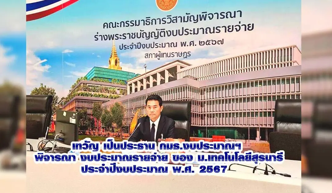 ปฏิบัติหน้าที่ประธานคณะกรรมาธิการงบประมาณฯ พิจารณางบประมาณของมหาวิทยาเทคโนโลยีสุรนารี เพื่อใช้ในกิจการของมหาวิทยาลัยฯ ในปี พ.ศ.2567 เพื่อส่งเสริมและพัฒนาการศึกษาให้แก่เยาวชนคนโคราชต่อไป